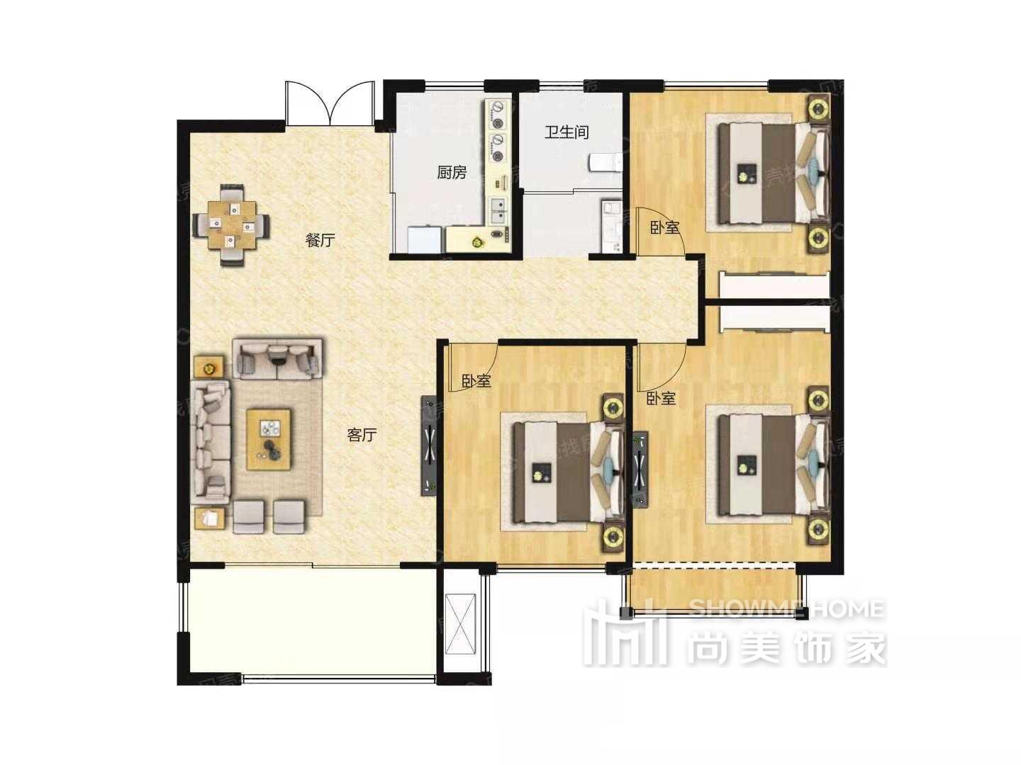 三室两厅两卫 | 101m²