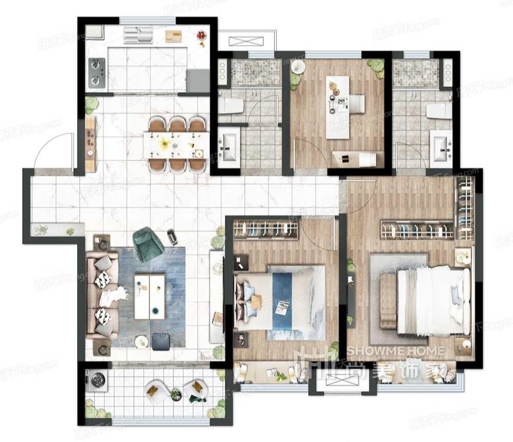 三室两厅两卫一厨 | 129m²