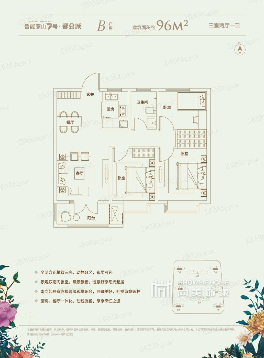 3室2厅1卫1厨 | 96m²